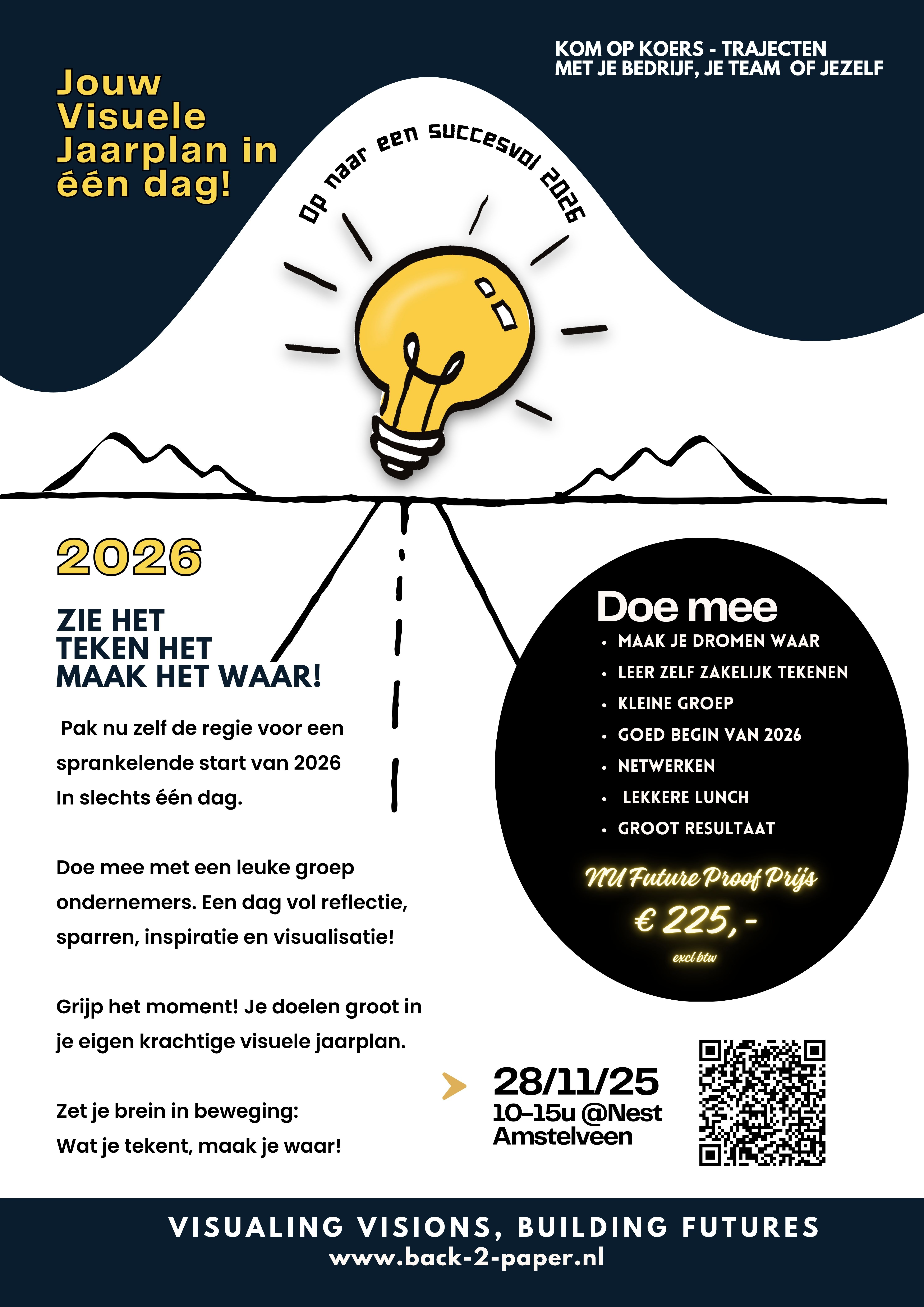 Tijd om je koers voor 2026 strak neer te zetten. Op papier. Maak helder wat jij wilt bereiken, waar jij je tijd aan wilt besteden. Blijf de baas over je agenda. Want als je tekent wat je voor je ziet, maak je het waar.